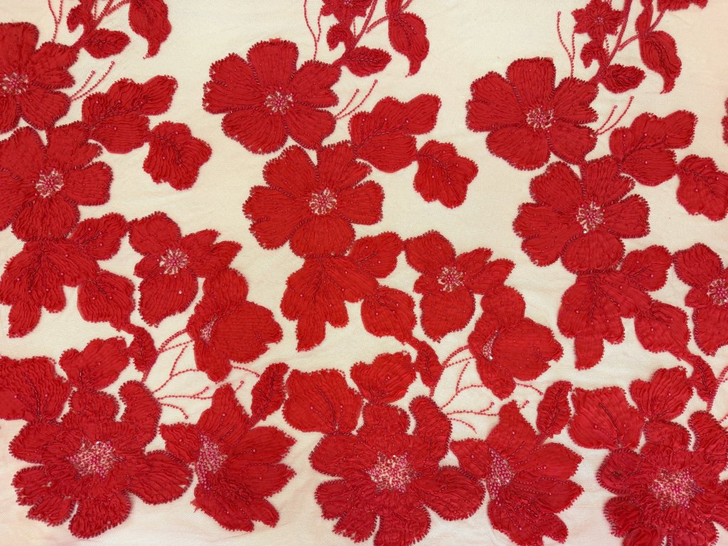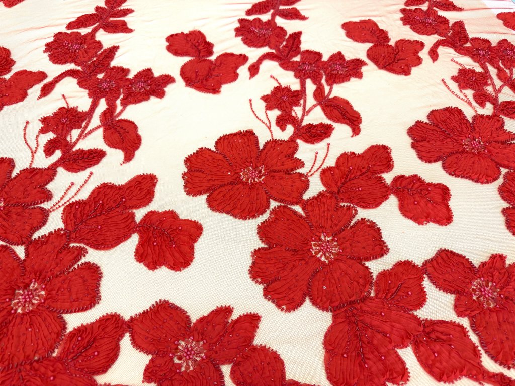 3D krajka s korálky a perlami - červená