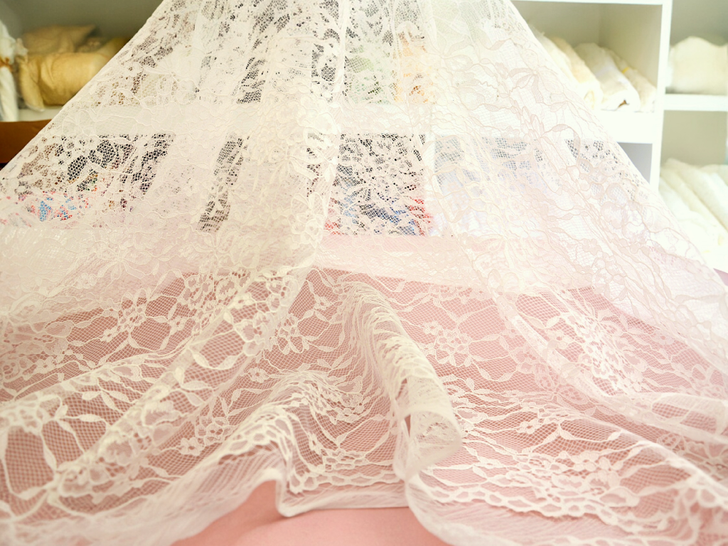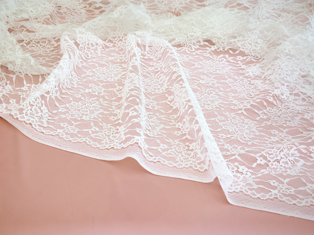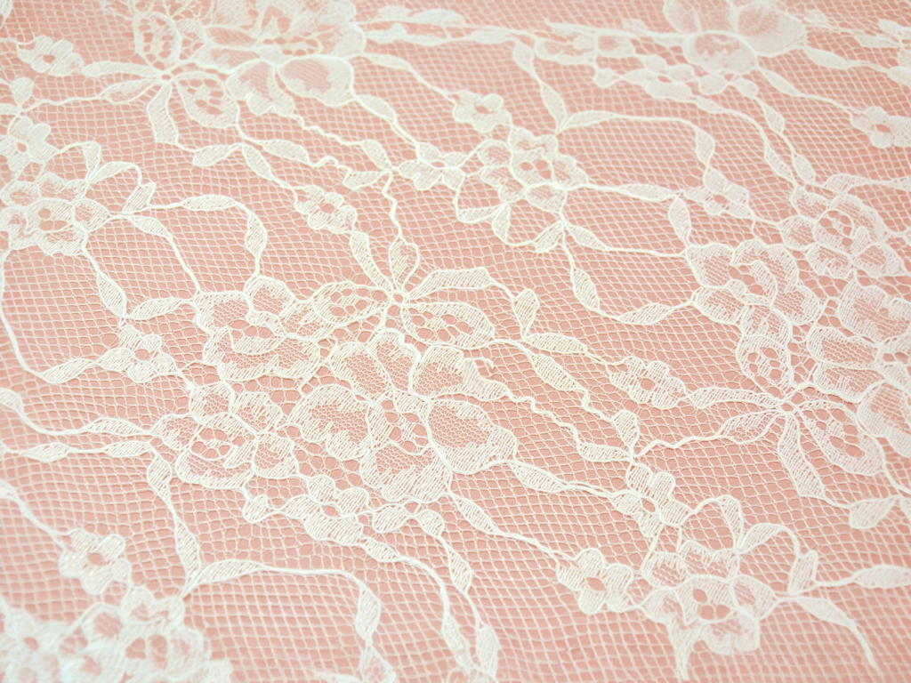 Krajka francouzského typu na tylu v odstínu ivory s detailním květinovým vzorem je perfektní volbou pro svatební šaty. Výšivka má výraznější kontury a působí lehce plasticky, díky čemuž krajka krásně vynikne na hotovém oděvu a zároveň dobře drží tvar. Materiál je lehký, vzdušný a příjemný na dotek, s jemným přirozeným leskem. Vzor je pravidelně rozložený po celé ploše, což usnadňuje práci při stříhání i návrhu modelu.