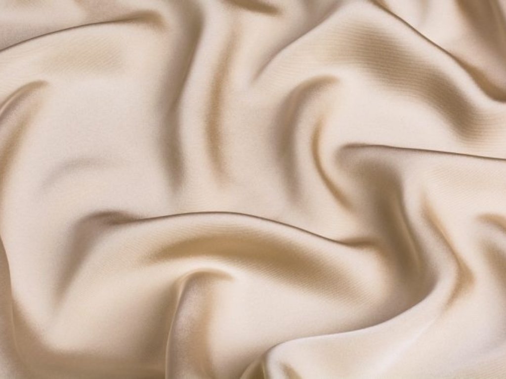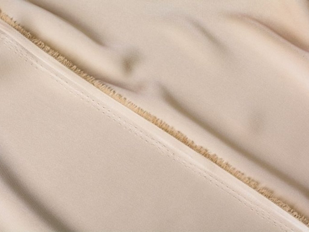 Satén oboustranný béžové barvy je splývavým, příjemným materiálem a polo matným hedvábným vzhledem. Satén je velmi hladký, lehce elastický a neprůhledný, téměř neprosvítá – což umožňuje použití bez podšívky. Materiál má střední gramáž s hustou vazbou, a tím se tato nádherná saténová látka se hodí k šití elegantních modelů, například společenských a večerních šatů, sukní, kalhot, kostýmů a halenek.