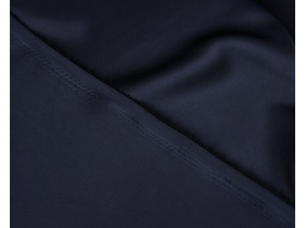 Satén oboustranný tmavě modré barvy je splývavým, příjemným materiálem a polo matným hedvábným vzhledem. Satén je velmi hladký, lehce elastický a neprůhledný, téměř neprosvítá – což umožňuje použití bez podšívky. Materiál má střední gramáž s hustou vazbou, a tím se tato nádherná saténová látka se hodí k šití elegantních modelů, například společenských a večerních šatů, sukní, kalhot, kostýmů a halenek.