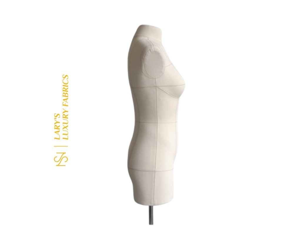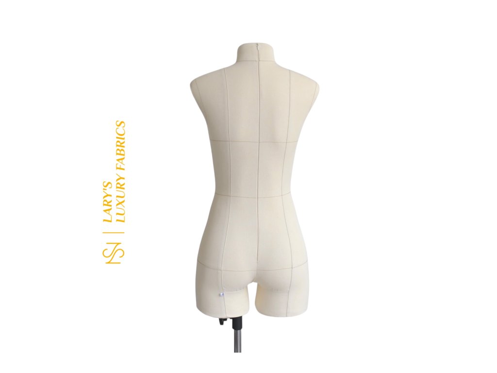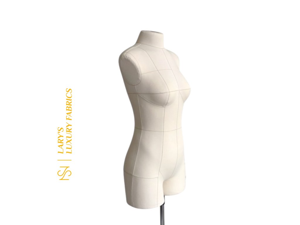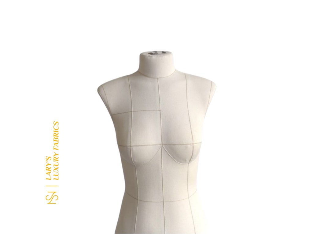 Na povrchu jsou vyznačené konstrukční linie, které slouží jako profesionální pomůcka při modelování střihu, konstrukci a kontrole proporcí a zaručují maximální přesnost při práci. Tato krejčovská panna není velikostně nastavitelná, ale je dostupná v konfekčních velikostech 34 – 42, které pokrývají nejčastěji používané rozměry v profesionálních ateliérech i návrhářských studiích.