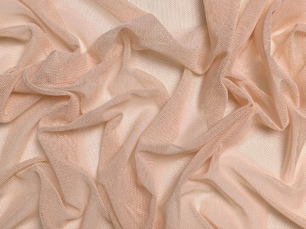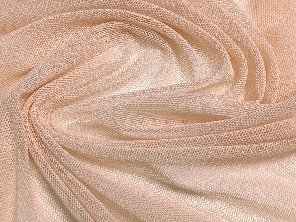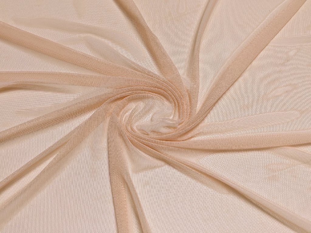 Úpletový pružný tyl v jemné tělové barvě, ideální pro výrobu tanečních a gymnastických kostýmů. Materiál je velmi pružný a elastický ve všech směrech, což zajišťuje maximální volnost pohybu a pohodlí. Lehký a vzdušný, snadno se přizpůsobí tvaru těla, což ho činí vhodným také pro šití spodního prádla nebo jako podkladový materiál pro různé dekorativní prvky.