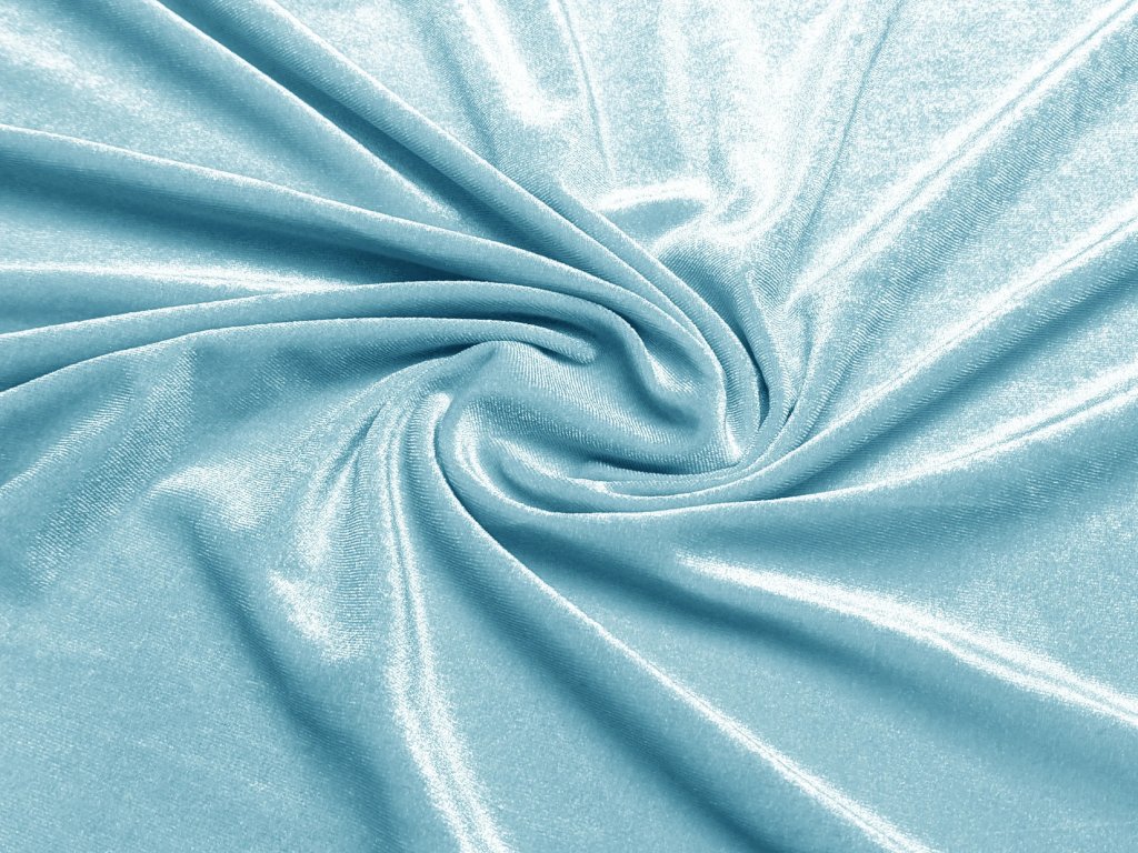 Elastický samet velur je kvalitní, z velmi pružného materiálu. Obepne tělo aniž by škrtil, což umožňuje volnost v pohybu. Povrch odráží světlo, samet hraje různými odstíny jedné barvy od světlé po tmavou. Látku můžete použít na výrobu večerních společenských šatů, tunik, sak, tanečních a historických kostýmů.