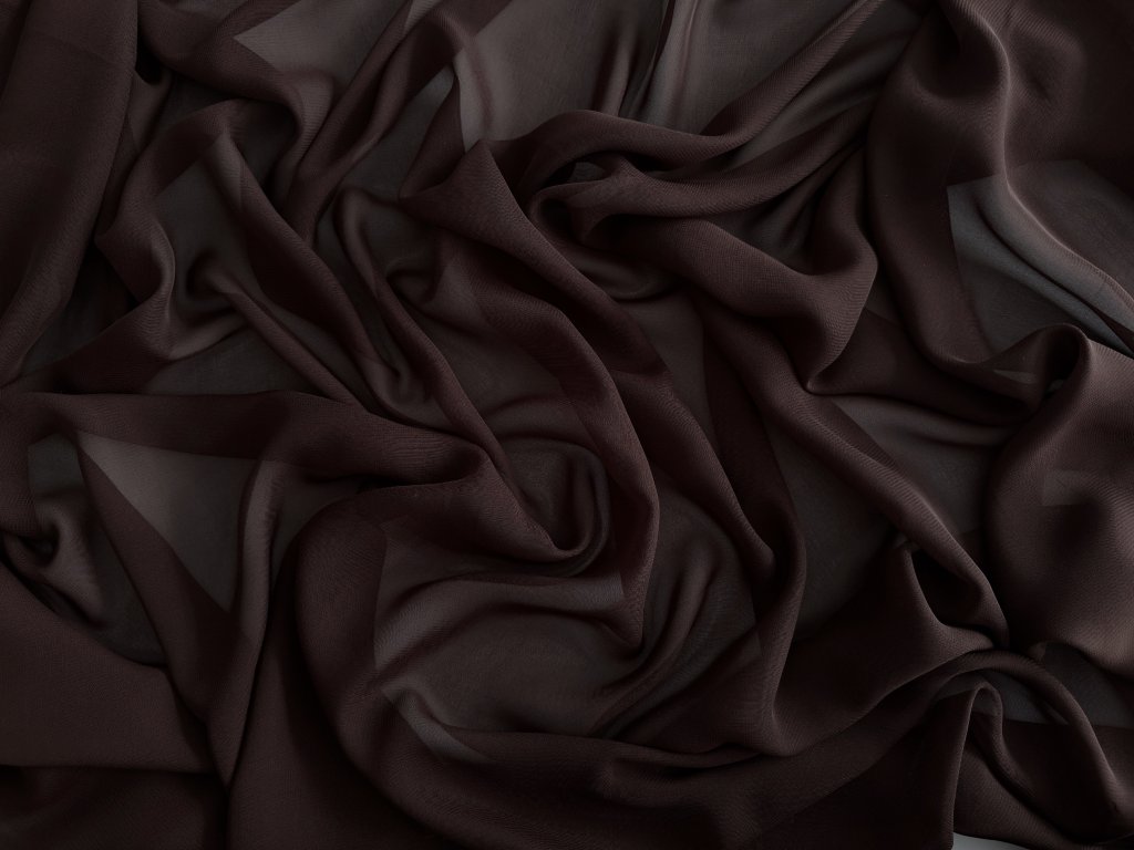 Lehký a vzdušný šifon v hluboké čokoládové barvě, která působí velmi elegantně a luxusně. Látka je jemně transparentní, hebká na dotek a přirozeně splývavá, díky čemuž vytváří měkké a plynulé siluety bez ostrých záhybů.