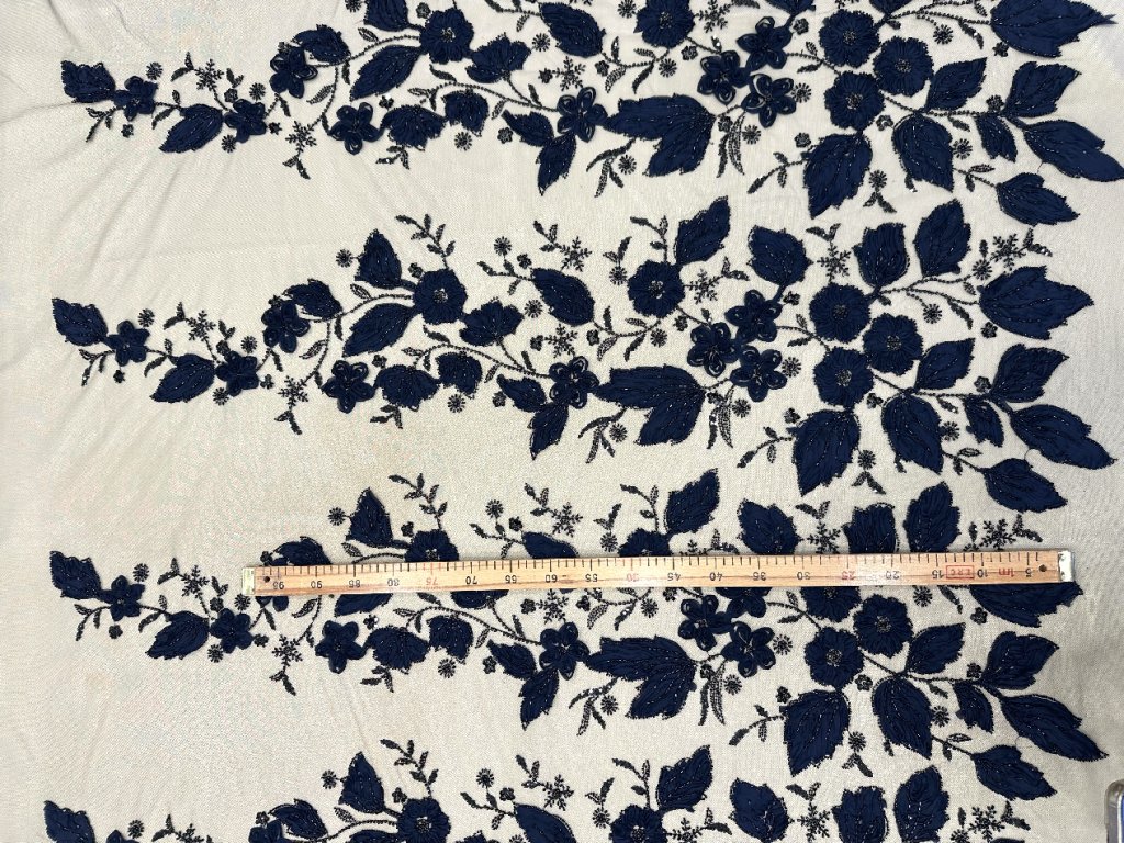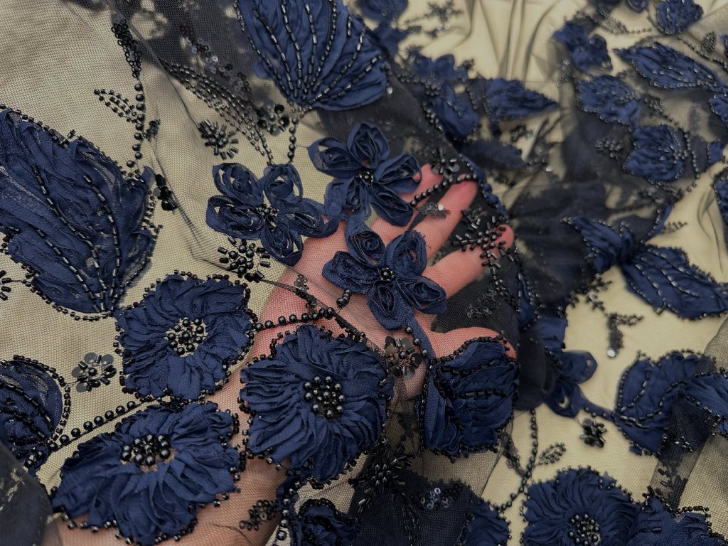 Vyšívaný tyl s květinovým motivem působí plasticky a vytváří luxusní efekt, ideální pro náročné módní kreace.