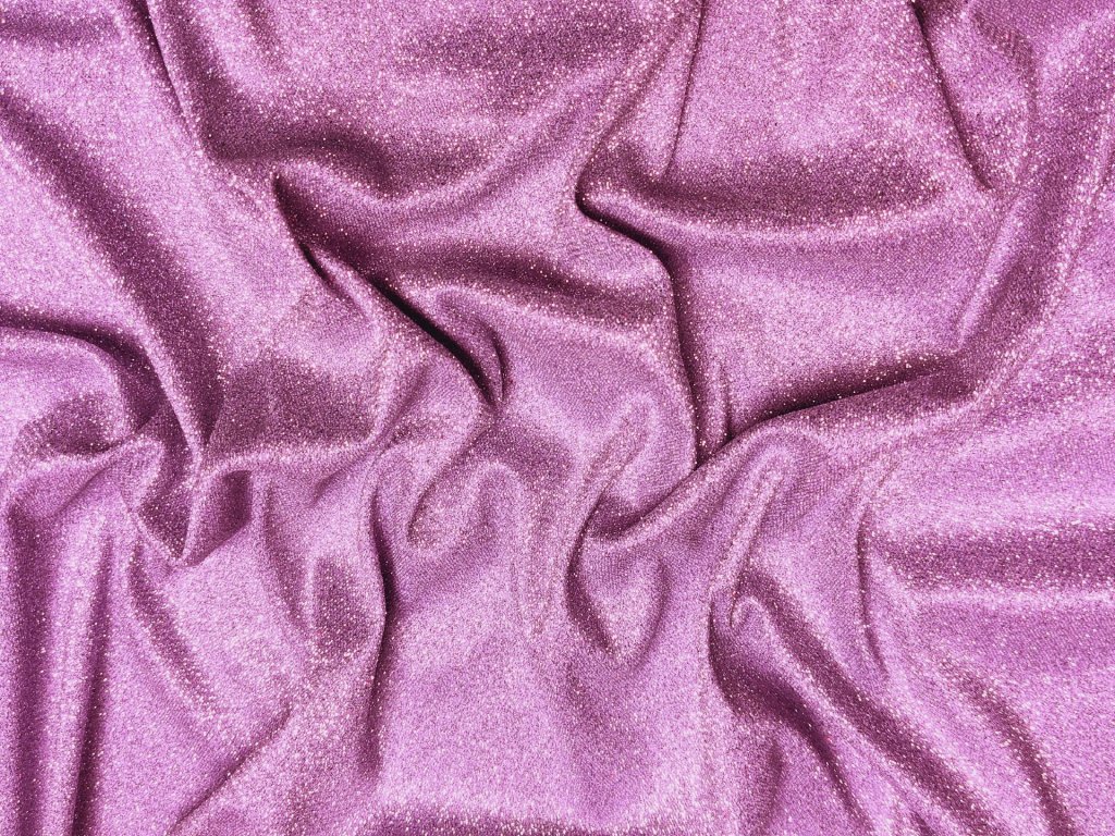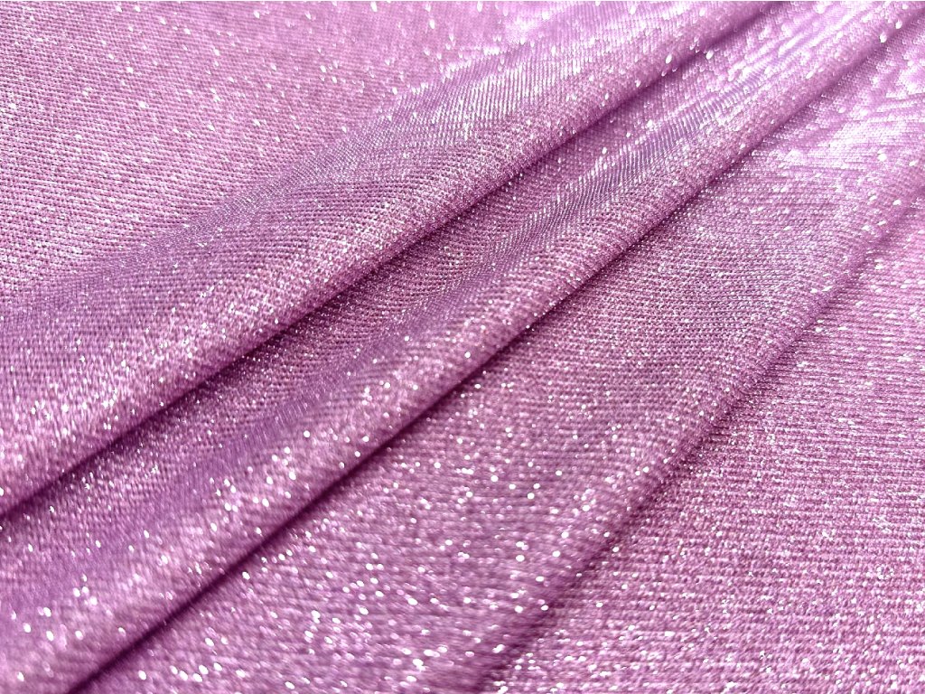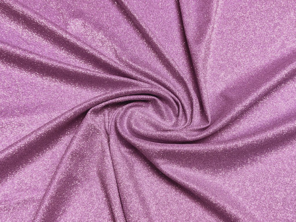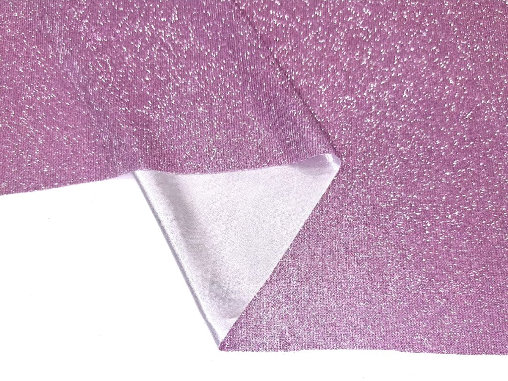 Třpytivý úplet ve fialovo-růžové barvě je jen mírně pružný, má hladký rub a velmi dobře se vrapuje, takže krásně drží tvar. Třpytivý úplet není průsvitný, proto není potřeba podšívka – ideální volba pro pohodlné, elegantní i výrazné modely.